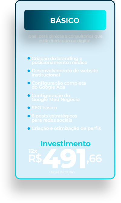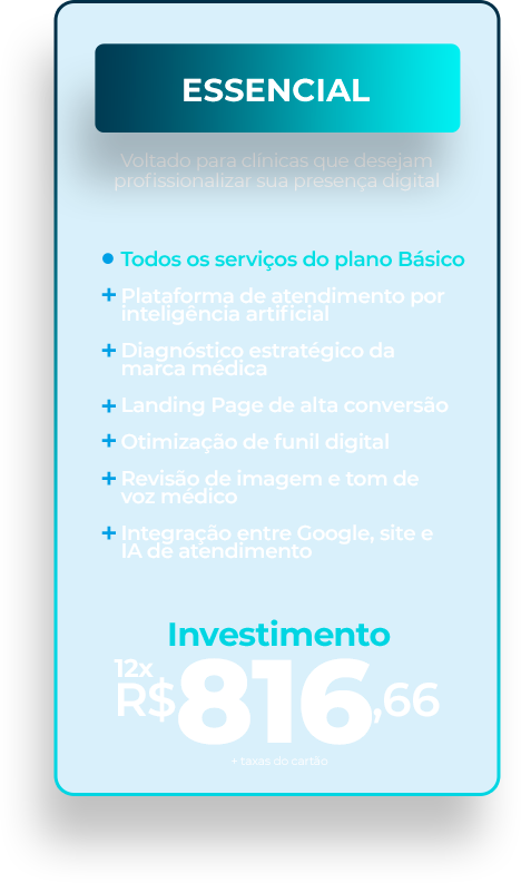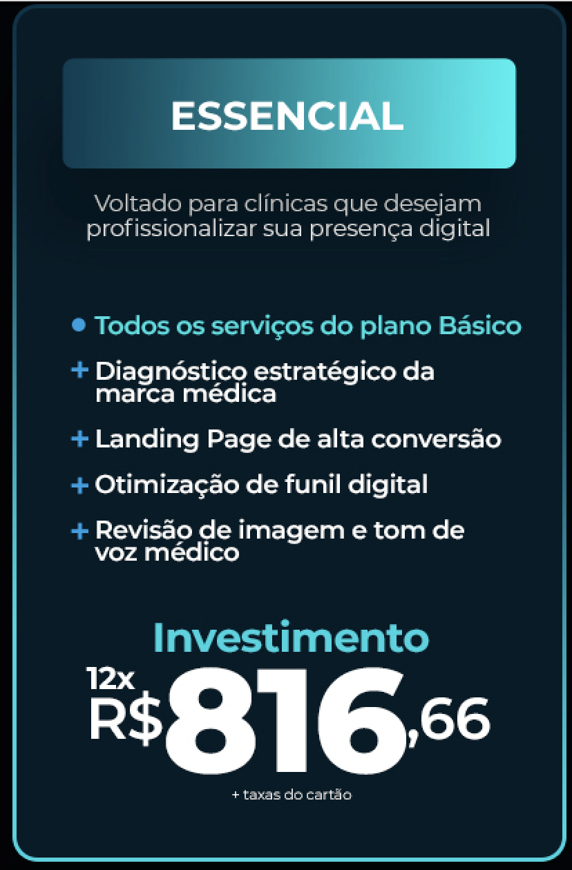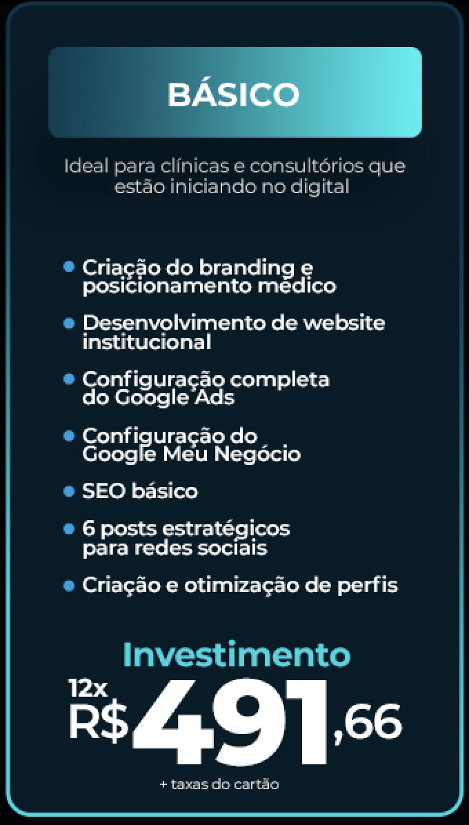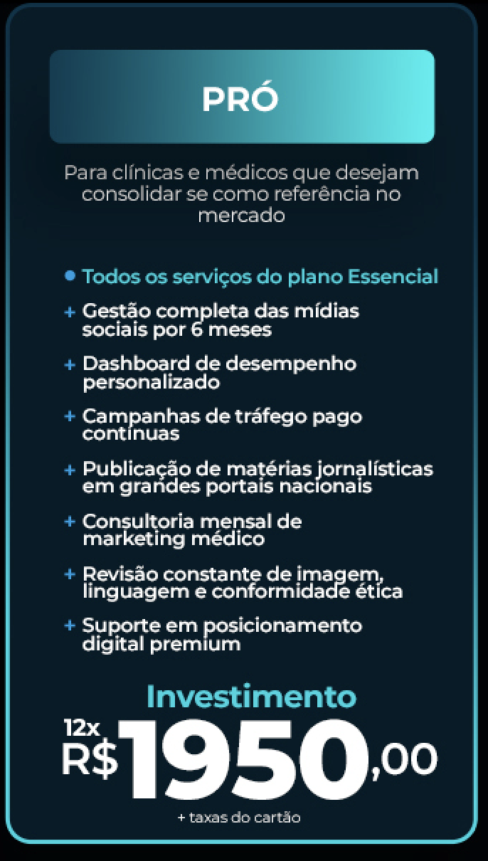 Nosso time é composto por mais de 34 profissionais multidisciplinares das áreas de saúde, marketing, tecnologia, comunicação e negócios. Criamos um sistema próprio de marketing e estratégia digital, desenvolvido internamente, que acelera o crescimento sustentável de nossos clientes em até 6 meses.